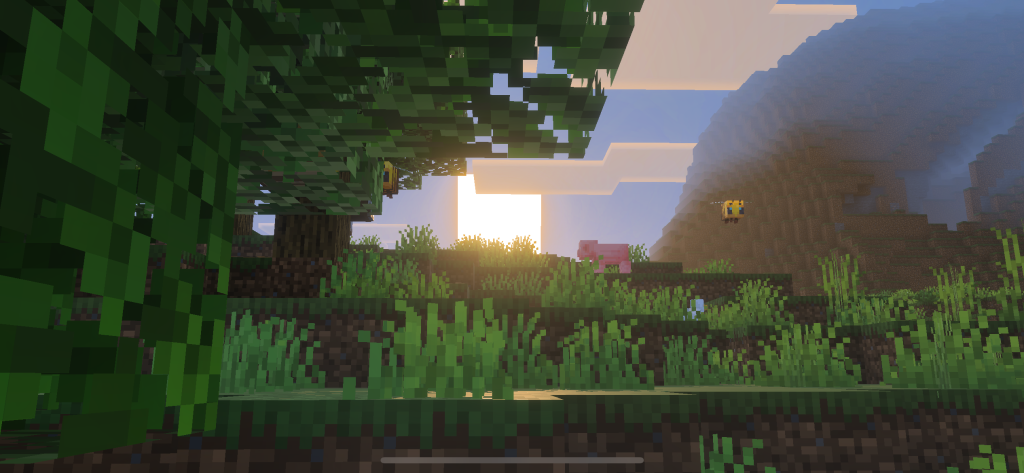このVibrant Visuals、従来のリソースパックによるシェーダーと明らかに異なる点として、Mod(エンティティ)に影が描画されるという違いがあります。