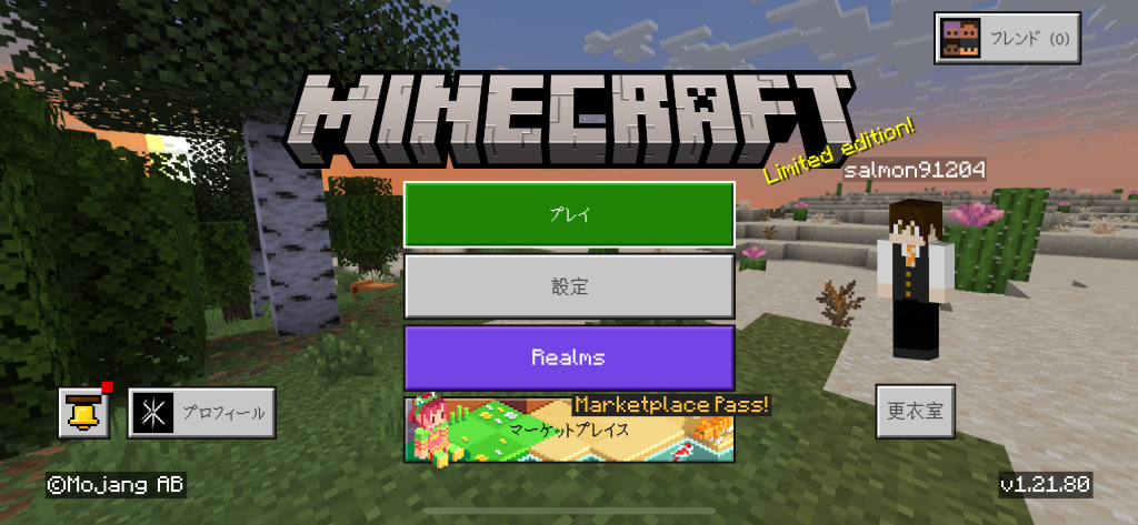 まず、マイクラのバージョンが v1.21.80以上になっていることを確認します。