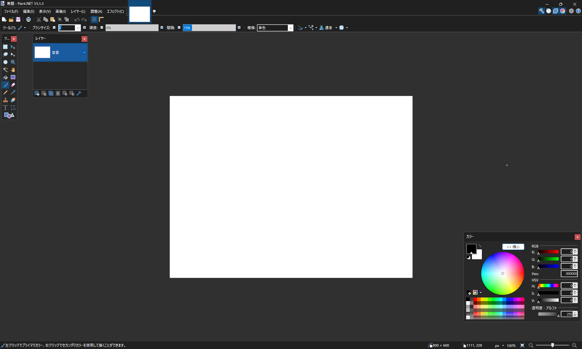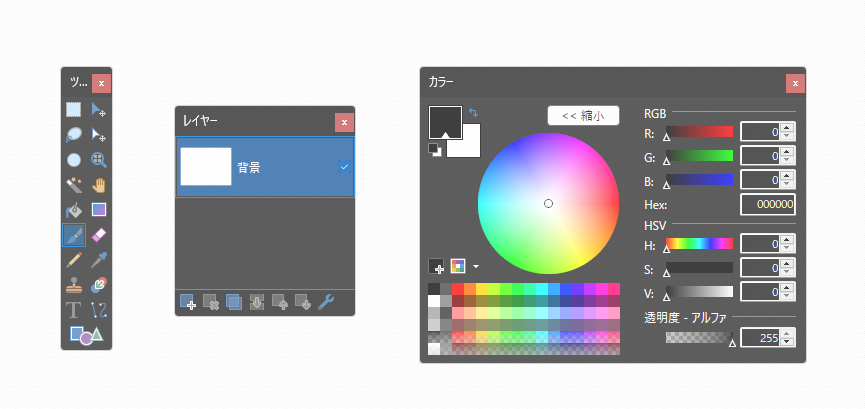 この画面がpaint.netのスタンダードな画面です。