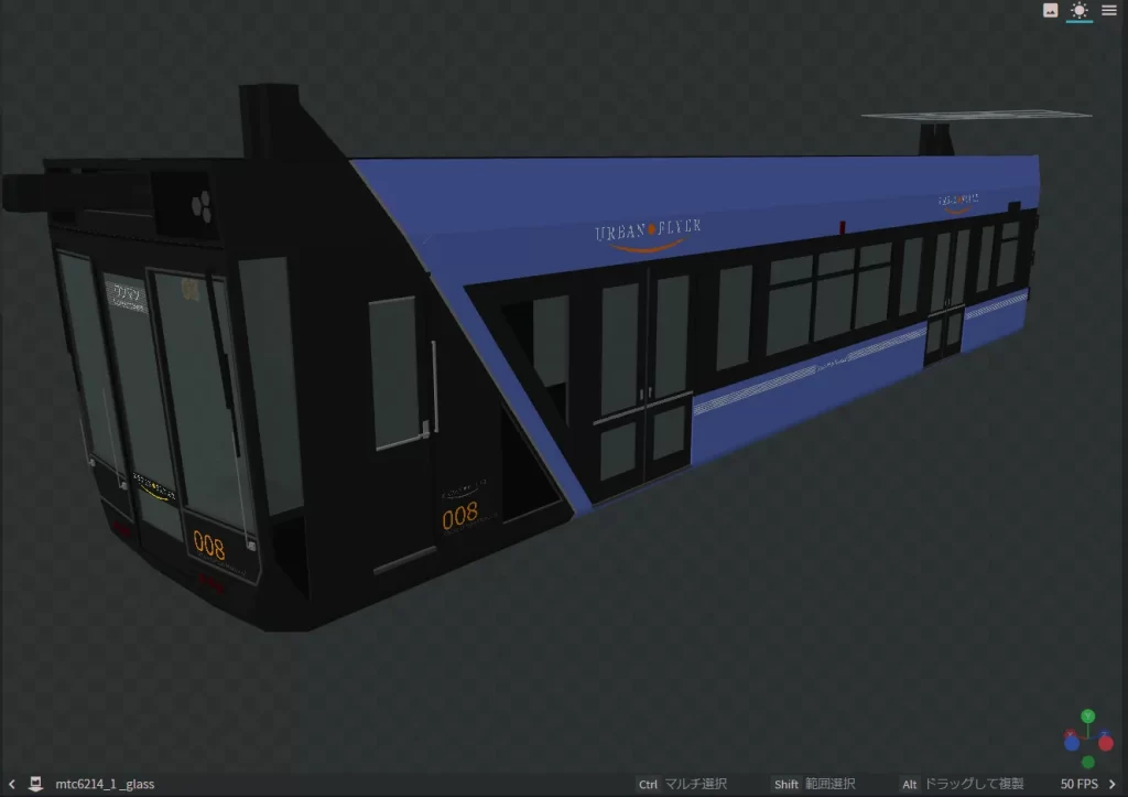 開くと車体本体の3Dモデルが表示されました。ここからガラスモデルを追加していきます。