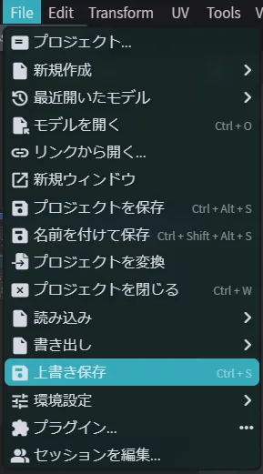 ここまでできたら、左上にある「File」から「上書き保存」で変更内容を保存しましょう。