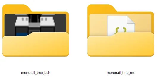 MTC2 懸垂式モノレールキットをダウンロードし、zipファイルを展開すると以下のようにリソースパックとビヘイビアパックの2つのフォルダがあるのが分かると思います。