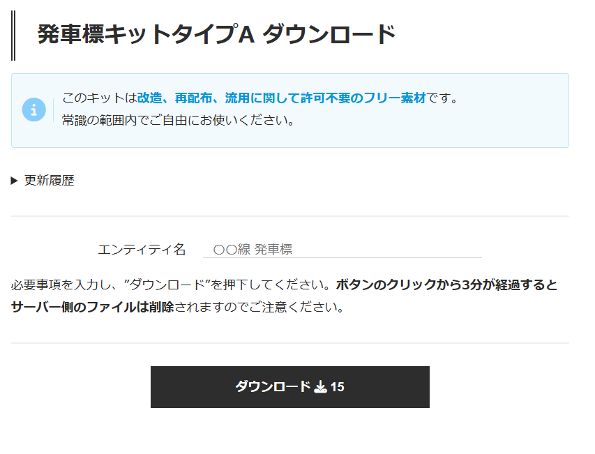 続いて、カスタマイズ用のテンプレートパックをダウンロードしましょう。今回使用するのは、発車標キットのタイプAです。