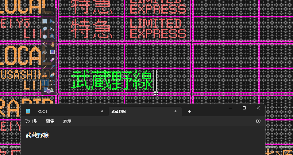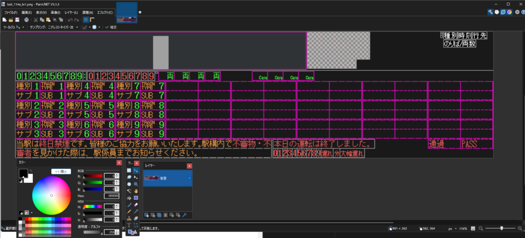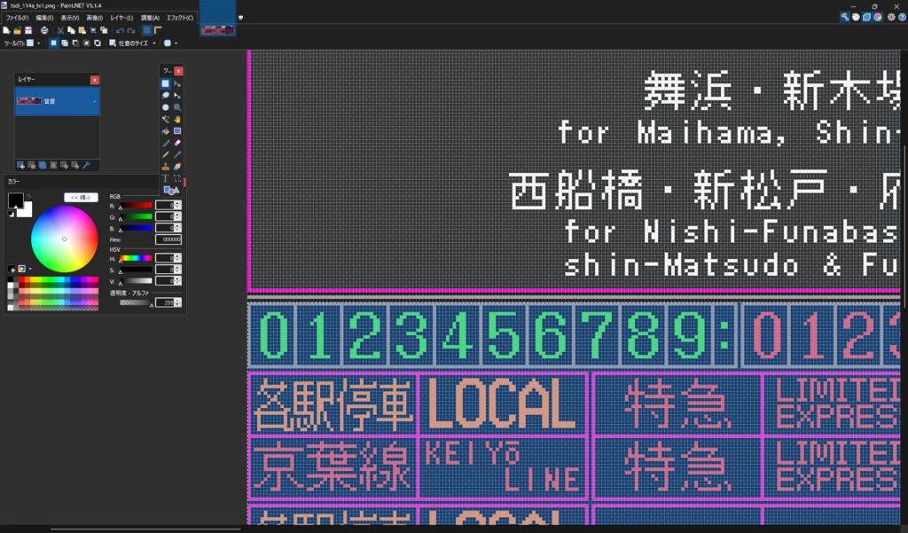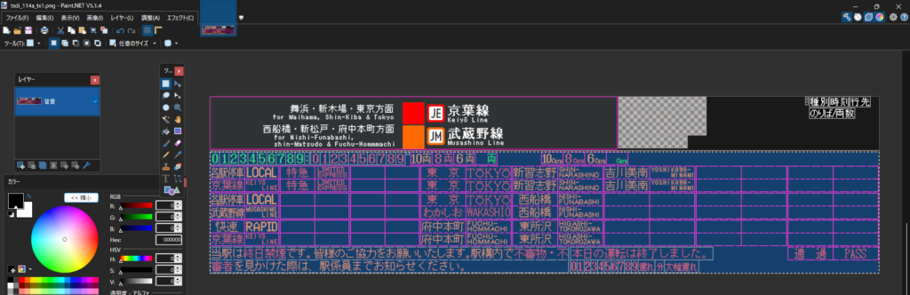 ・tsdi_xxxx_tx1.png:表示データ1に対応するテクスチャです。今回は時刻表データ1に海浜幕張駅 上り(3・4番線)を割り当てるので、それに対応したテクスチャを描いていきます。