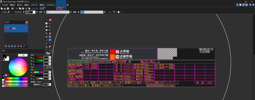 以上で時刻表データ1(海浜幕張駅上り)のテクスチャは製作完了です。続いて2以降のテクスチャも作成していきます。